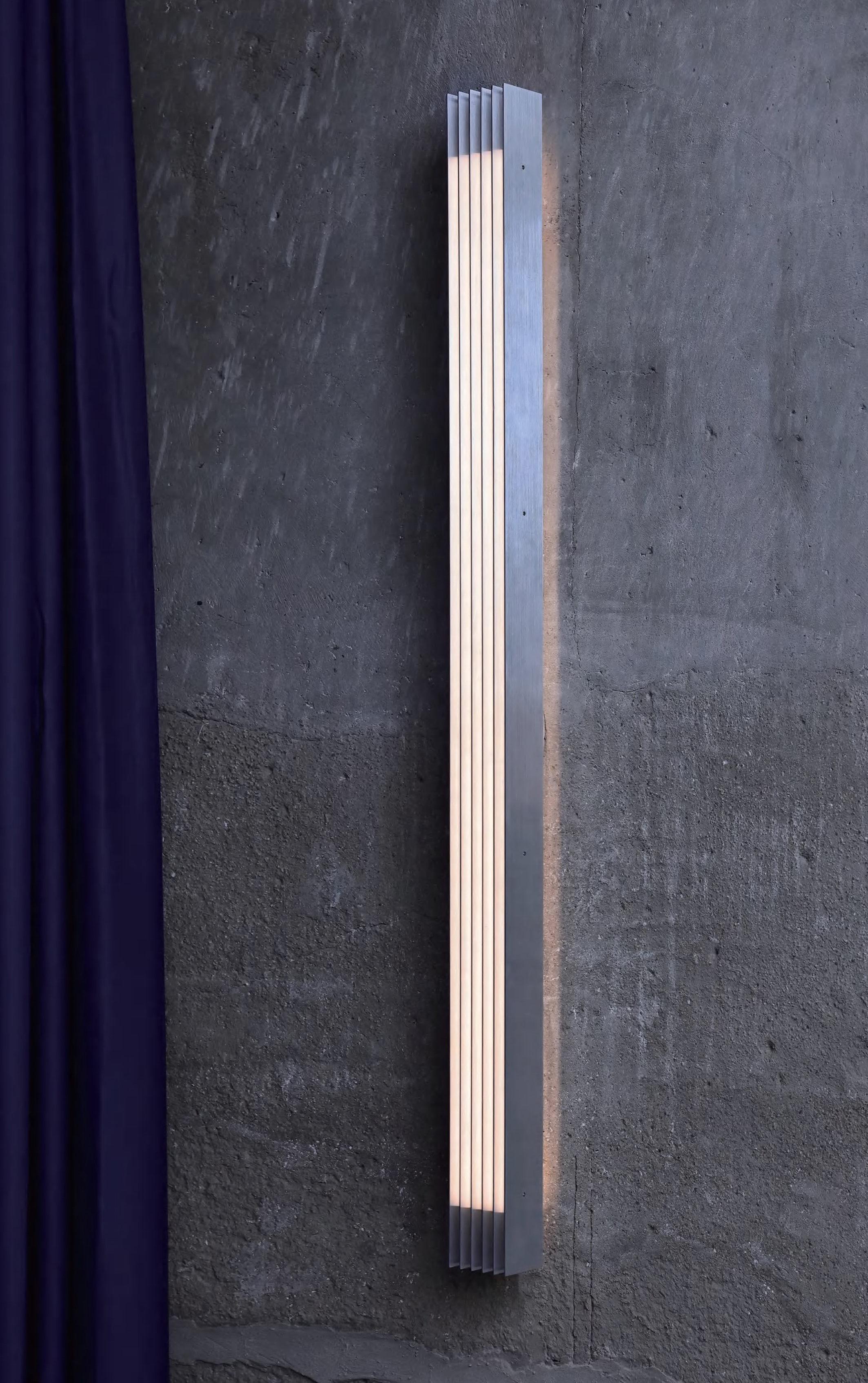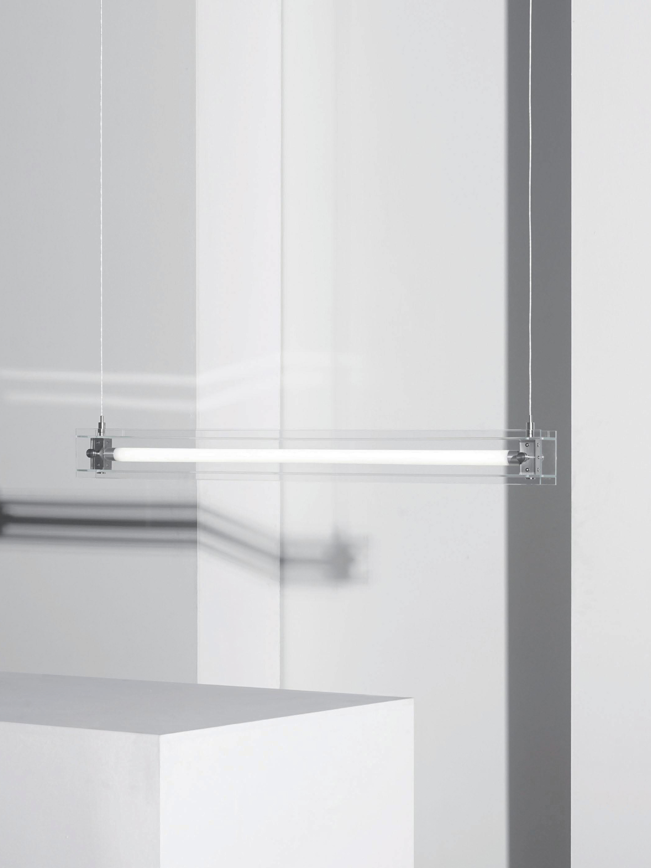 A series based on aluminum profiles combined with bent metal or lenticular sheets. Each version creates distinct light effects and atmospheres.