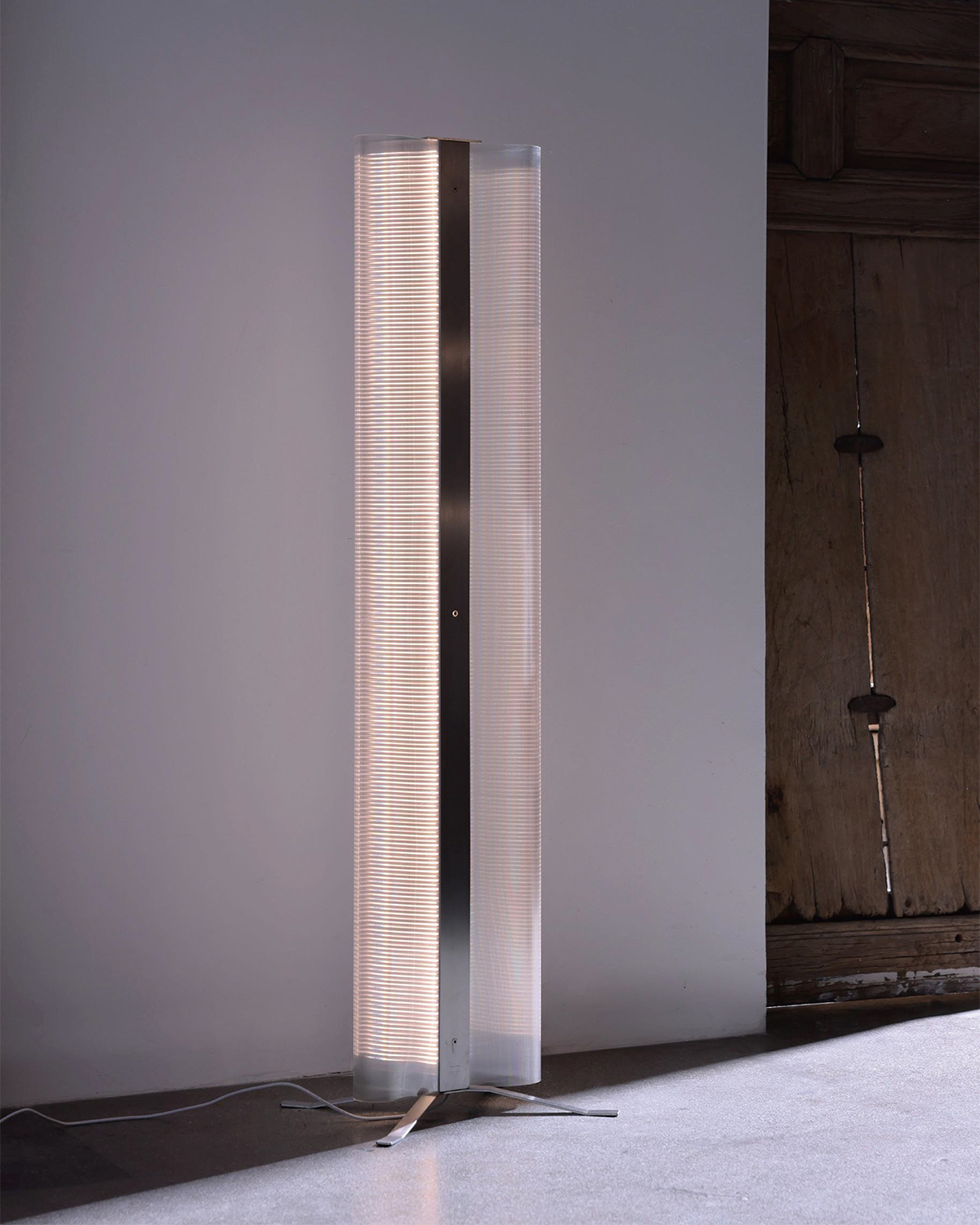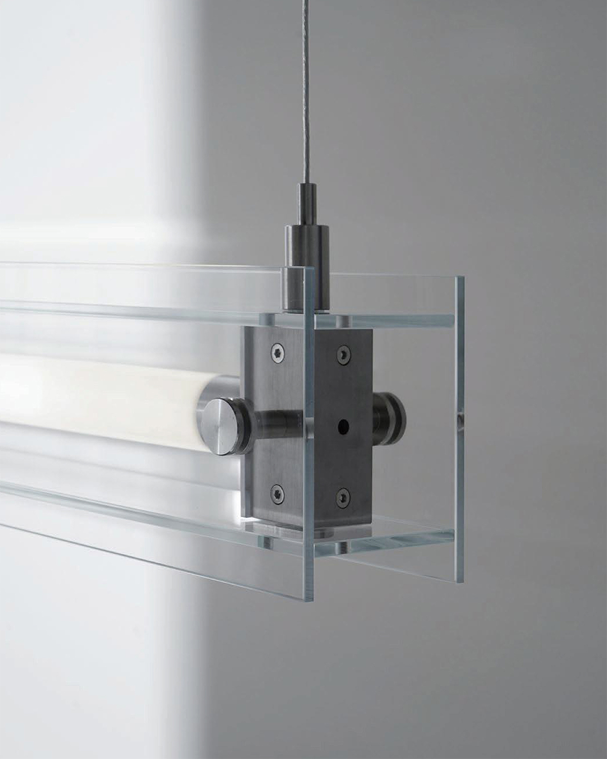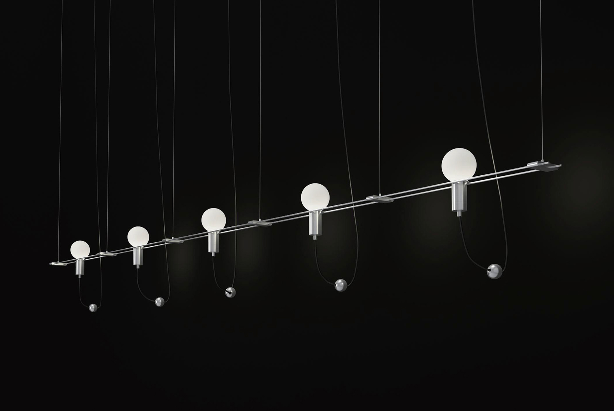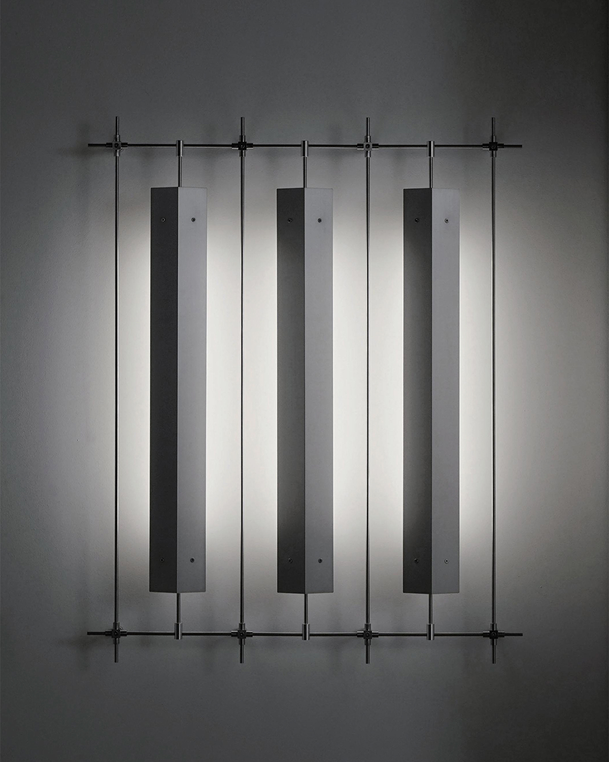 A series that exposes structural elements as part of its design. Thin beams of light cut through space, forming chandeliers, wall, and floor lamps.