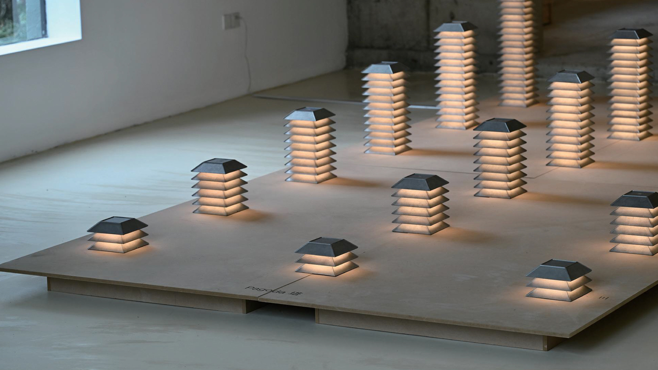 A modular lighting system inspired by traditional pagoda structures. Die-cast modules stack to create lamps of varying scale, producing uniform, soft light.